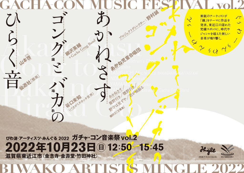 本年のテーマは『鐘(かね)』。古代大陸から近江の地に渡ってきた鋳物文化に着想を得て、アーティストが新作を作りました。東近江エリアの隠れた梵鐘スポットに、時代やジャンルを超えた新しい音楽をお届けします。