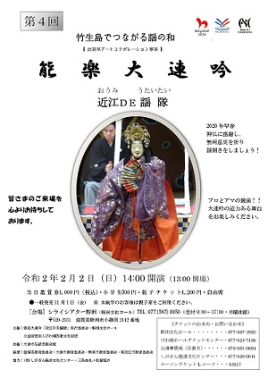 主催:公益財団法人びわ湖芸術文化財団、能楽大連吟「近江DE謡隊」実行委員会、野洲文化ホール