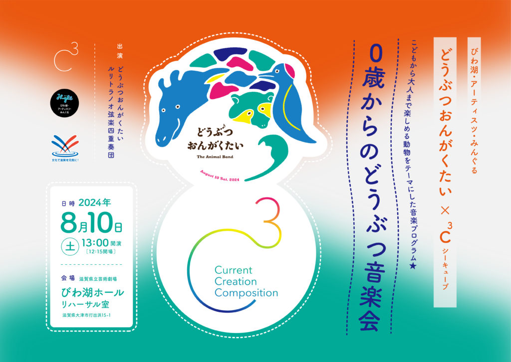 「どうぶつおんがくたい」は、メンバー全員が欧州への留学経験を持ち、現地の非常に洗練されてきた子どもたちのための芸術作品に触れてきました。その経験を活かした音楽プログラムに、C³がコラボします!