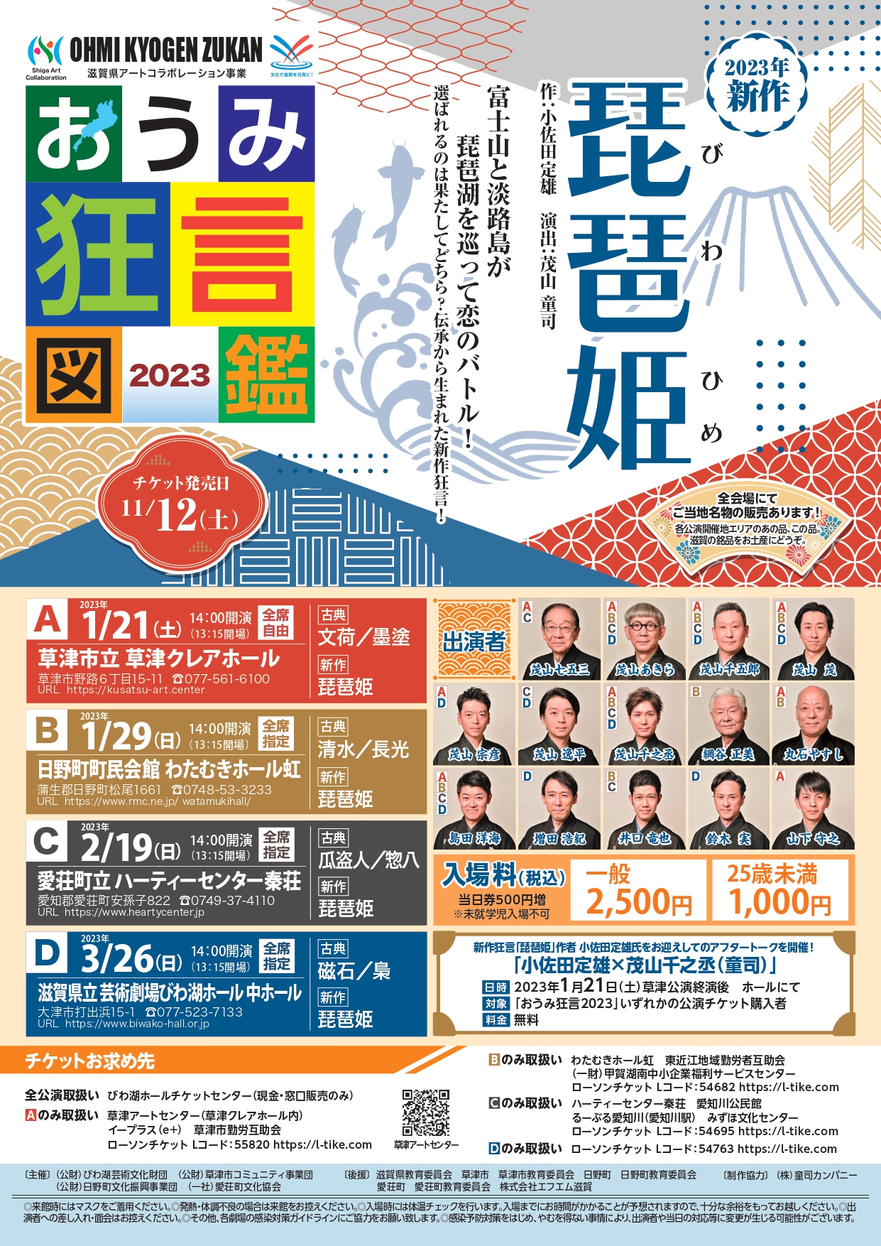 主催:公益財団法人びわ湖芸術文化財団、公益財団法人草津市コミュニティ事業団、公益財団法人日野町文化振興事業団、一般社団法人愛荘町文化協会