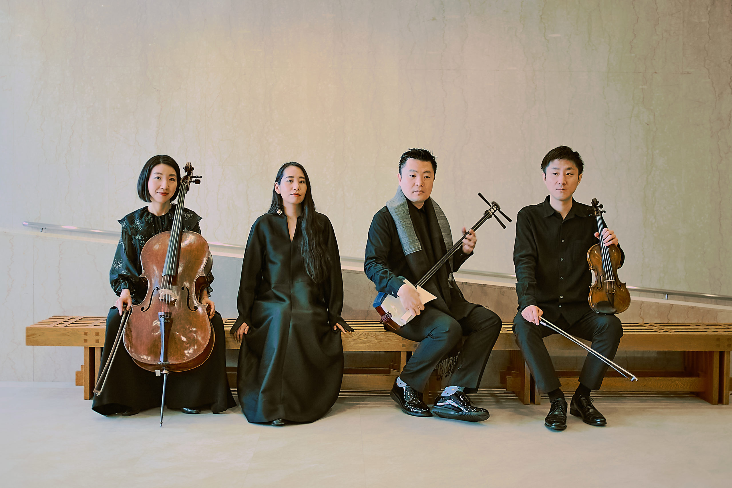 淡海に淡座の御出座し!「江戸にまなび、音と言葉のあわいをえがく」淡座はヴァイオリニスト、チェリスト、三味線奏者、作曲家から成るクリエイショングループ。11月8日開催のC³(「現代音楽×弦楽四重奏」のコンサート)に先立ち、古今東西をつなぐ音楽を届けます。