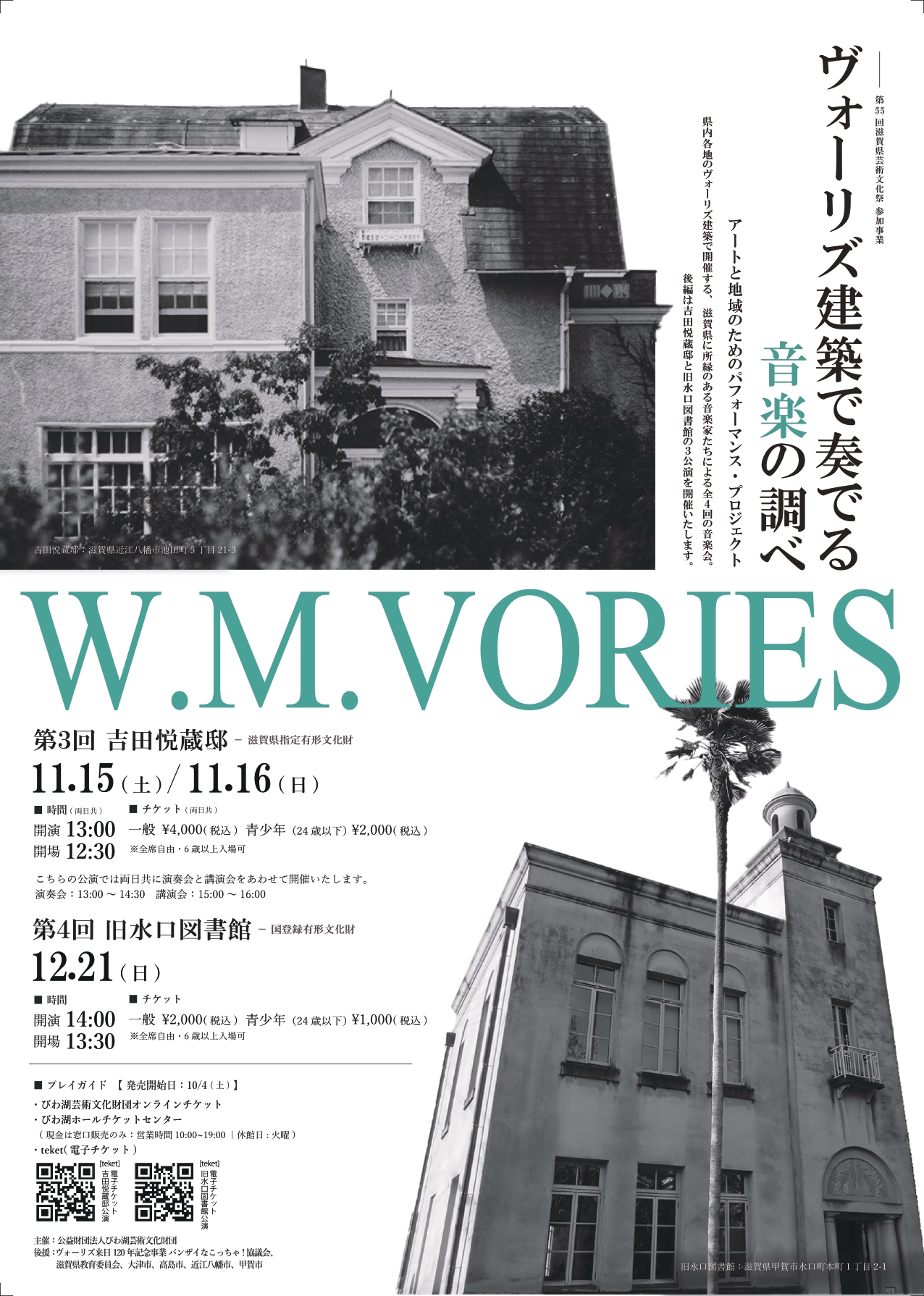 2025年はヴォーリズが近江八幡の地に降り立ってから120年目。今も大切に守り伝えられている建物を会場とし、滋賀県に所縁のある若手音楽家による演奏会を県内各地で開催します。